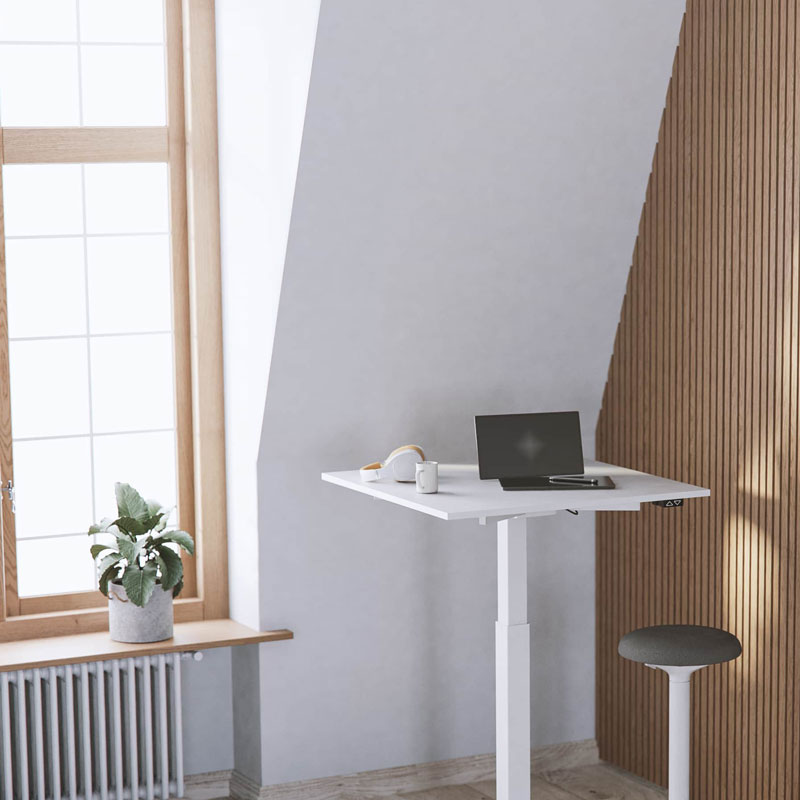 Med sin superkompakte størrelse er Elevate 1 den perfekte løsning til ethvert hjemmekontor, der maksimerer effektiviteten uden at gå på kompromis med funktionaliteten. Sig farvel til klodsede og uhåndterlige kontormiljøer. Elevate 1 er specielt designet til at være pladsbesparende, så du kan forvandle selv de mindste hjørner af dit hjem til et produktivt arbejdsområde. Stativet har et stilfuldt design, der gør, at skrivebordet passer ind i alle typer kontorområder. Bordstativet har rektangulære ben, der er pulverlakeret i hvid, sort eller sølvgrå. Stativet har en anbefalet maks. belastning på 60 kg.