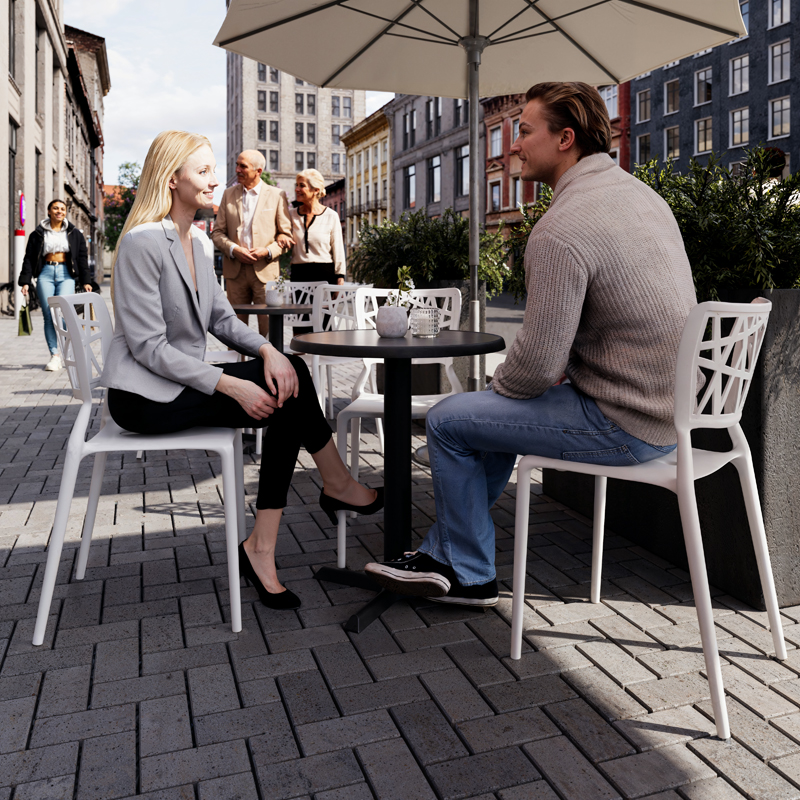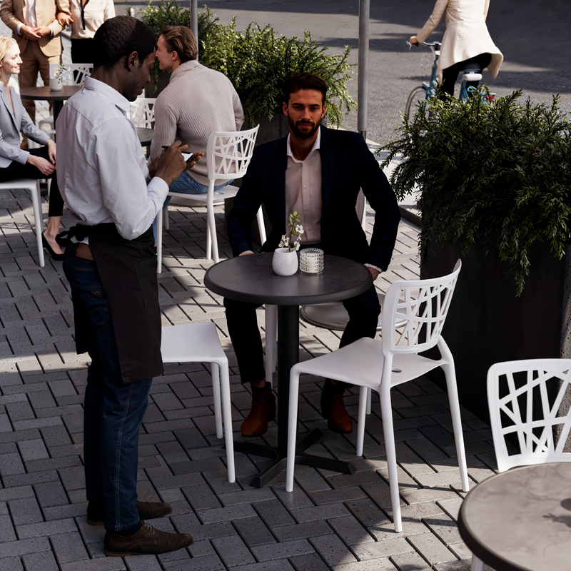 Tags: Cafebord rundt, Bord med krydsede ben, Ferrea bord, Uteserveringsbord